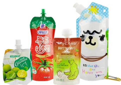"Flexible packaging with a built-in spout for easy pouring and resealing."